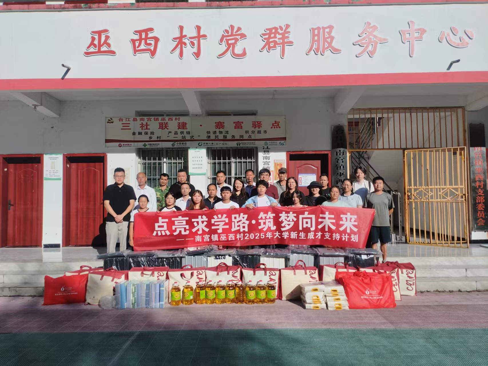 成才支持计划持续发力。当天,招生就业处党支部在巫西村开展助学活动,为11名大学新生送上包含被褥、行李箱、生活用品等在内的“入学礼包”,切实解决他们入学准备的实际困难。
