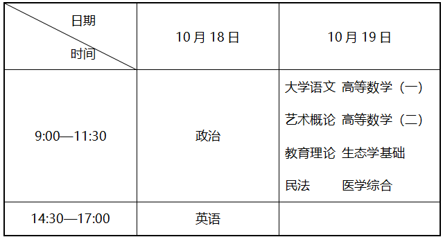 专升本考试时间表