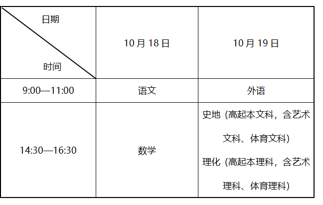 高起本、高起专考试时间表