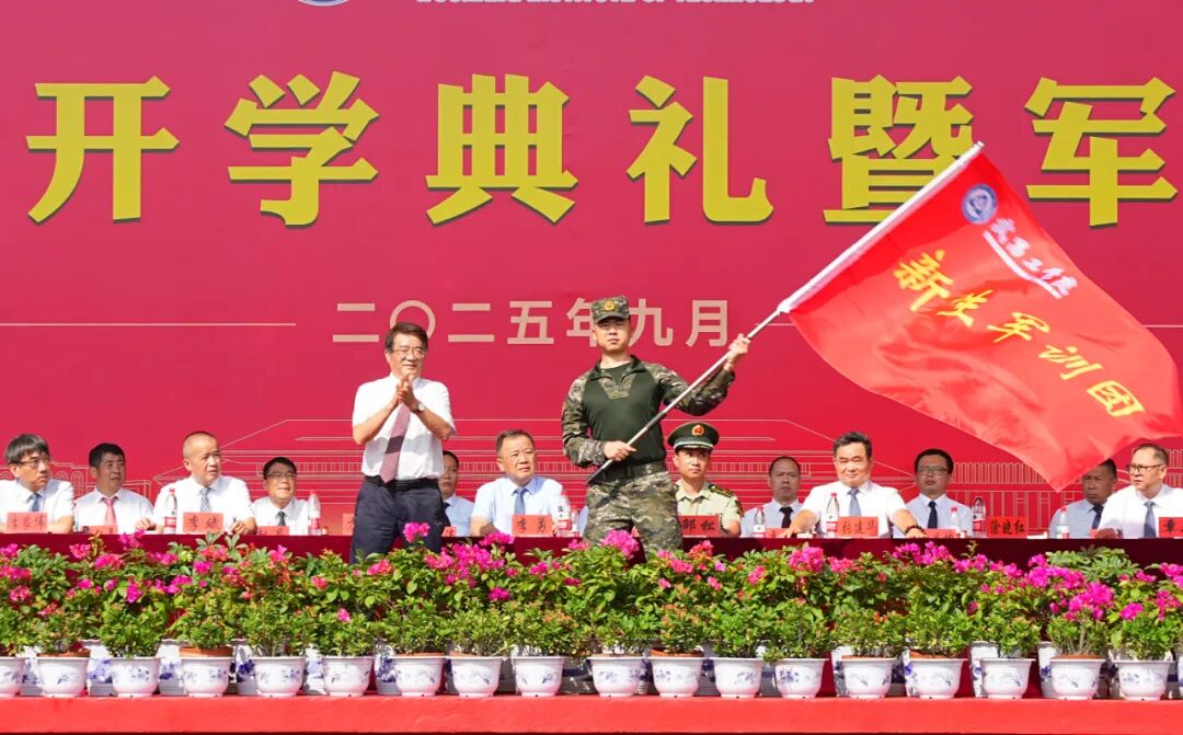 9月15日上午,武昌工学院2025级新生开学典礼暨军训动员大会在学校运动场隆重举行。武警武汉支队少校副政治教导员邵松同志出席典礼。校长李勇出席典礼并讲话。校党委书记、常务副校长方国平主持大会。校党委副书记、副校长涂晓红为军训团授旗。全体校领导出席开学典礼。学校各单位主要负责人,全体教官、新生辅导员,教师代表、老生代表、新生家长代表及2025级全体新生参加了开学典礼。