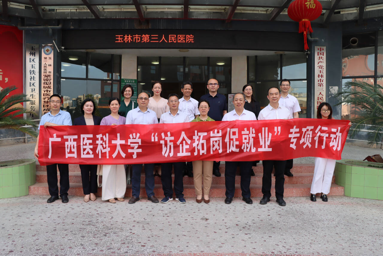 为促进毕业生高质量充分就业,推进就业市场开拓与招生工作创新双轨并进,构建校校、校院协同育人新格局,4月21日-22日,学校副校长陈兴才带队分别前往玉林市第一中学、玉林市第三人民医院、兴业县人民医院开展招生工作交流及“访企拓岗促就业”专项行动。