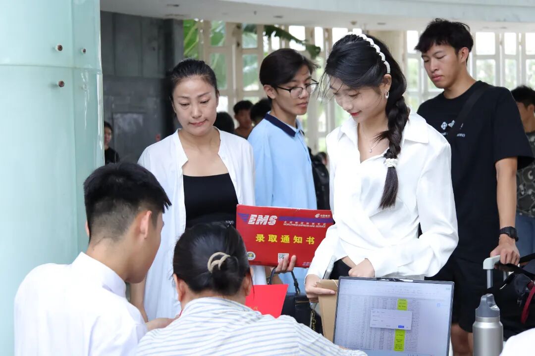 一位来自湖南的家长正拿着手机拍摄校园,“刚才看孩子跟着学姐去办手续,老师还跟我们详细说了宿舍和食堂的情况,这么贴心,我们也放心了”。