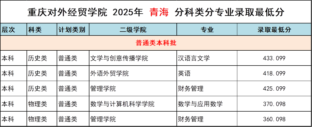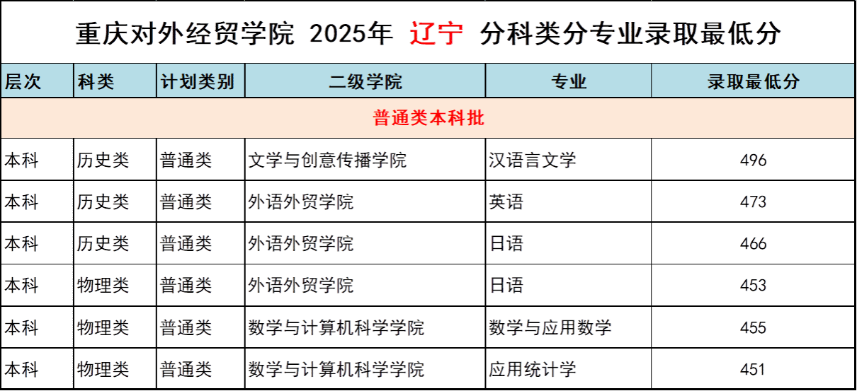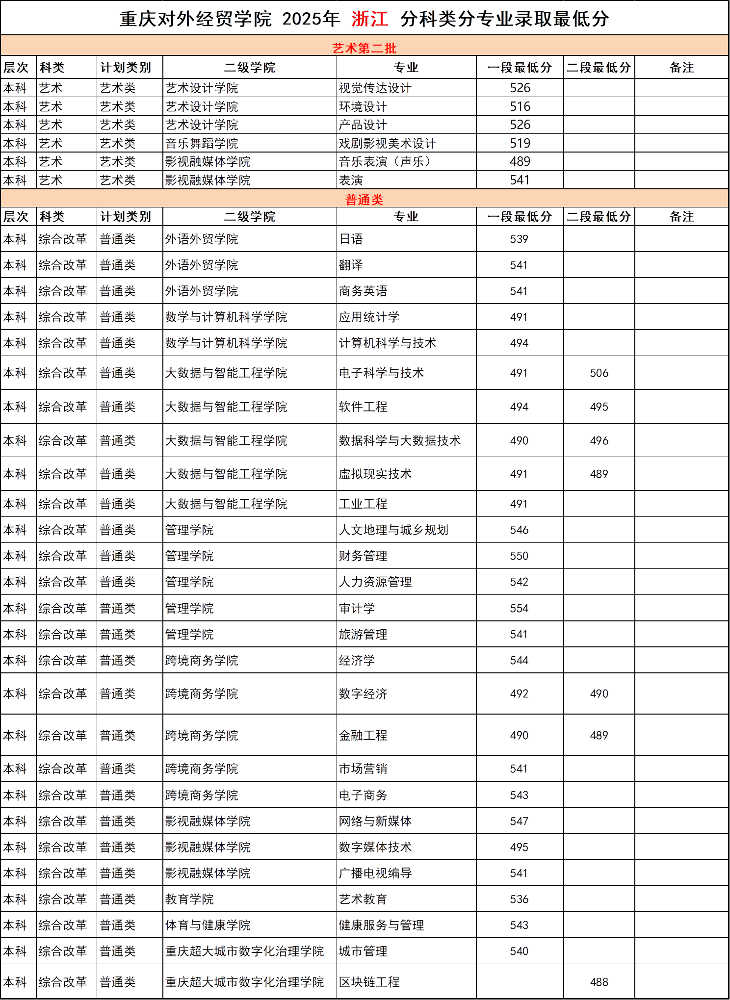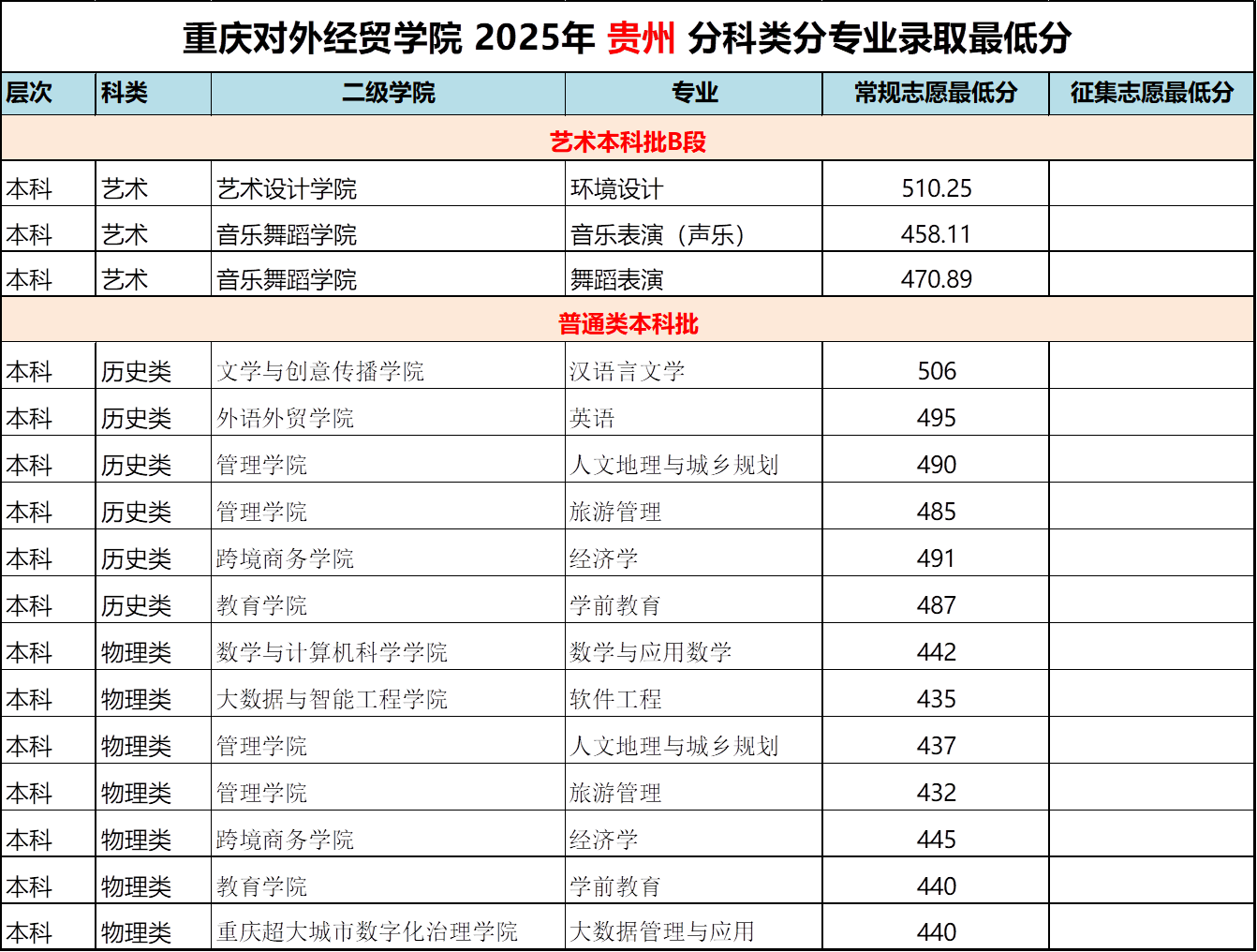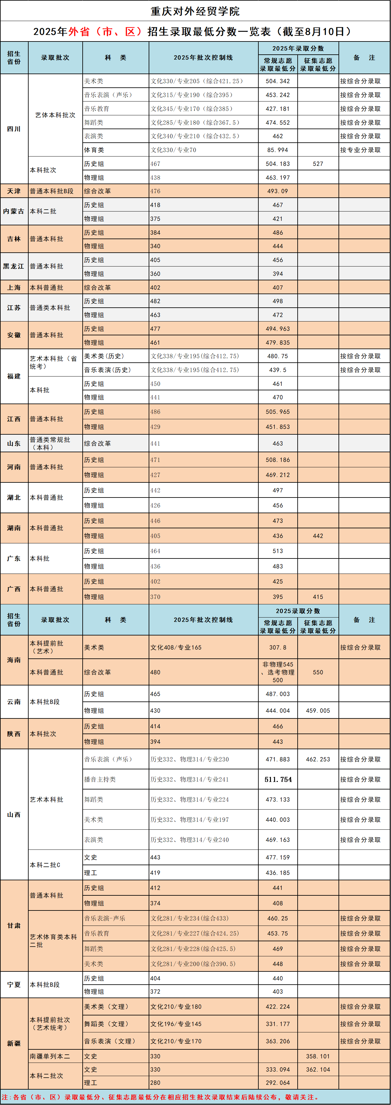 重庆对外经贸学院2025年外省(市、区)录取分数