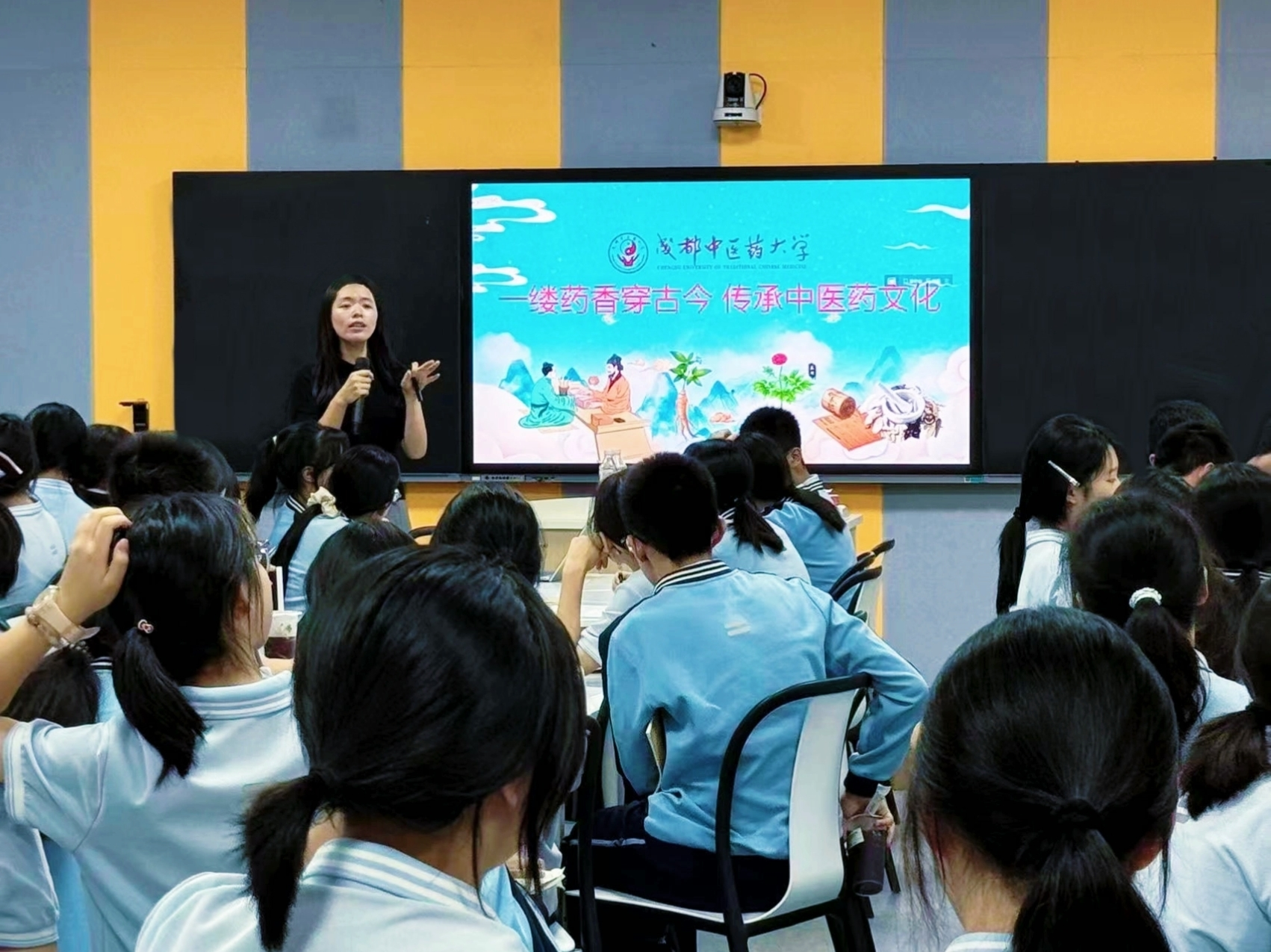 承岐黄薪火,启少年新程。为弘扬中医药文化,2025 年 9 月 28 日晚,成都中医药大学现代中药产业学院李美凤副教授走进成都新世纪外语学校,开展“药香校园:探秘中草药”主题讲座,为师生呈上一场中医药文化盛宴。?