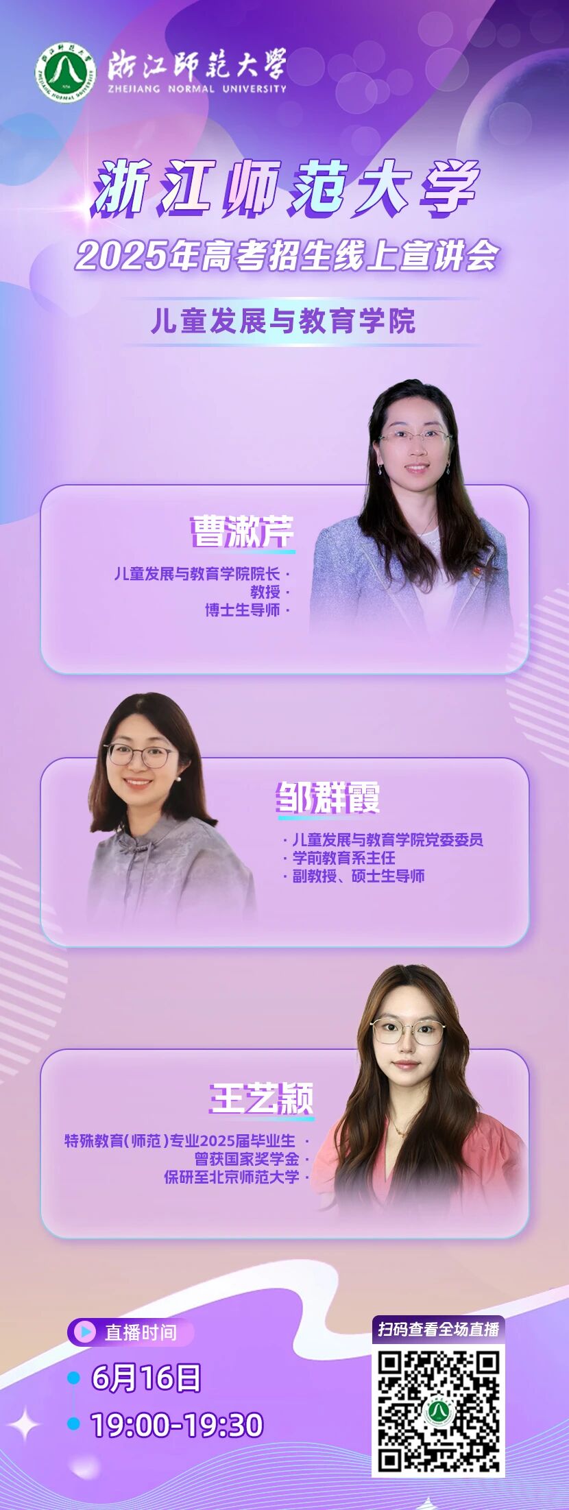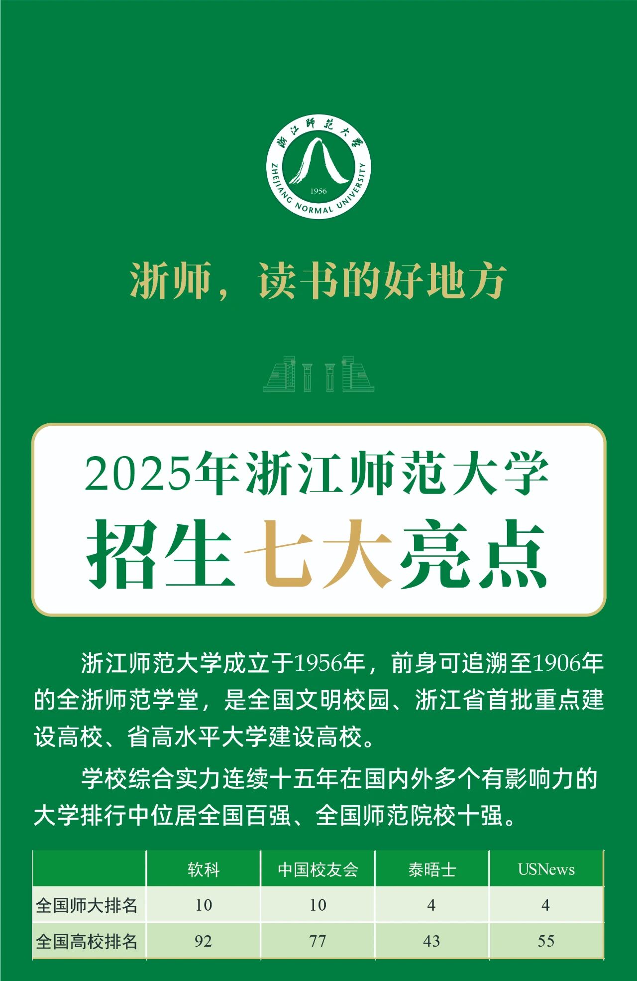 2025年高考悄然落幕那些奋斗的汗水、温暖的鼓励都定格成这个夏天最珍贵的回忆砺学砺行,维实维新浙江师范大学发布2025年本科招生七大亮点愿以匠心全方位助力学子成长成才期待与你在浙师校园共赴美好未来你也想成为浙STAR吗?机会来啦浙江师范大学2025年高考招生线上宣讲会闪亮来袭儿童发展与教育学院、体育与健康科学学院