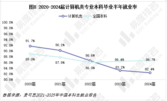 近些年,计算机类专业毕业生就业率持续下降,2023届开始,计算机类专业本科生就业率低于全国本科平均就业率。这意味着靠一张计算机文凭就能轻松获得好工作的时代过去了,对于个人而言需要有强大的专业功底才能在这场计算机行业结构性调整中赢得自己的位置。