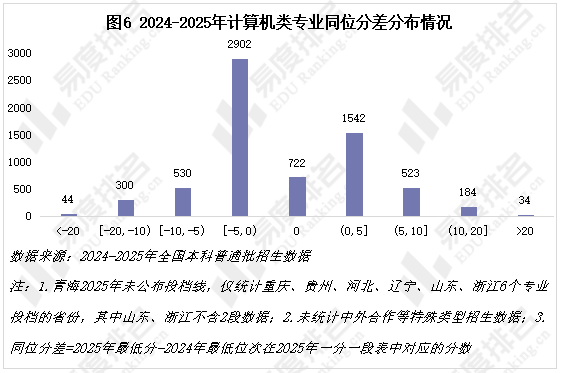 2025年56%的专业分数下降,34%的专业分数有所上升,其中13%的专业下降超过5分,10%的专业上涨超过5分,计算机类专业的整体录取分数显著下降。