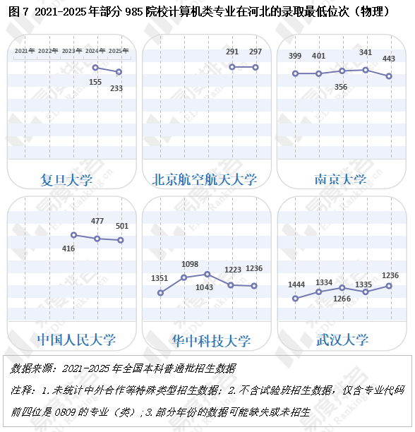 以河北省为例,下表展示了计算机类专业排名靠前的六所985高校历年录取位次。可以看出,尽管计算机类相关专业整体录取位次下降,但头部院校的录取位次依然居高不下。反映了计算机专业从一个人人追逐的“蓝海”,变成了一个需要凭实力竞争的红海。对于头部院校计算机专业作为“硬核科技皇冠上的明珠”的地位反而更加稳固。它吸引了那些真正有志于从事底层技术革新、不畏竞争、追求顶尖职业发展的最强学子。