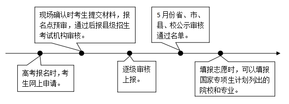高考报名时,考生须在报名系统中网上申请,并按要求提交相关材料。考生如同时符合国家专项计划、高校专项计划、地方专项计划报考条件,可同时申报。