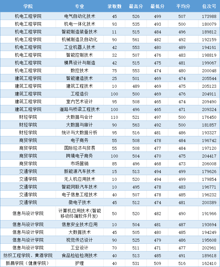 浙江工业职业技术学院2025年浙江省普通高等学校(普通类)录取情况统计
