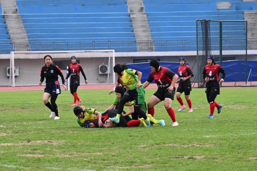 在女子组赛事中,我校女队展现出强劲的统治力。首场对决辽宁何氏医学院,队员们凭借精准传接与严密防守零封对手,以25:0的悬殊比分轻松取胜。第二场迎战沈阳工程学院,球队延续强势表现,攻防两端协同发力,最终以27:7的比分再下一城。尽管在第三场与沈阳农业大学的较量中以5:20憾负,但此前积累的积分仍助力女队稳居亚军宝座。