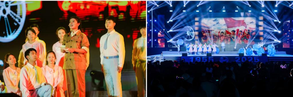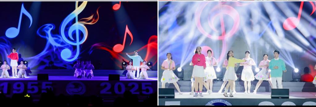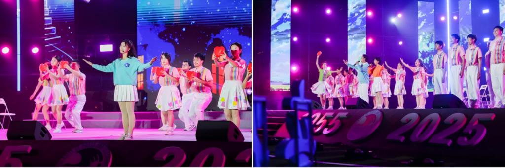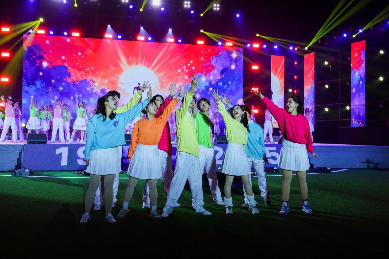 活动在主题朗诵中开启序篇,北邮学子深情诉说着校徽勾勒的岁月符号以及不变的初心使命,四大板块内容依次展开,层层推进。“忆浓情岁月”篇章借通讯演变串联经典歌曲,展现国家发展与北邮助力通信事业的历程;“为胜利而歌”篇章用多种形式演绎革命歌曲,纪念抗战胜利、传承红色基因;“青春交响曲”篇章以活力歌舞表演展现北邮青年风貌;“明天在歌唱”篇章通过师生同台,体现代际传承与对学校未来的期许。活动前的游园会环节,各展位将自身特色和趣味游戏融合,展现了学生社团活动的多元魅力,营造了热烈、向上的校园文化氛围。