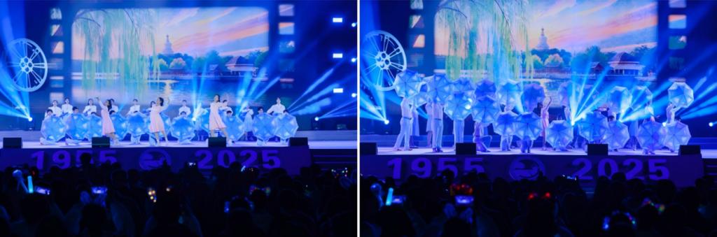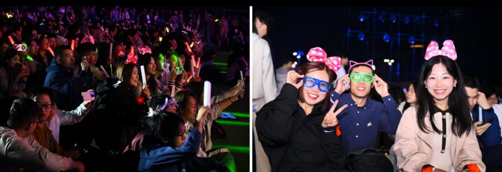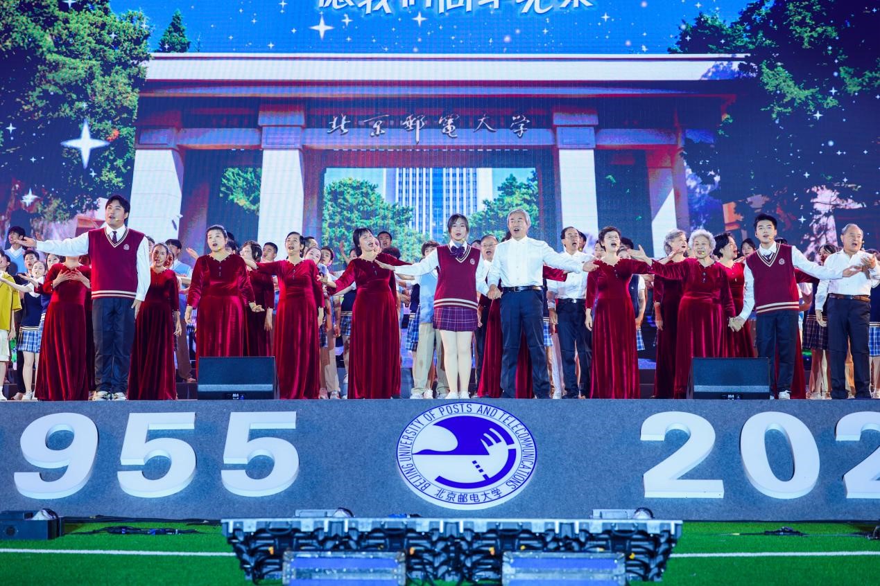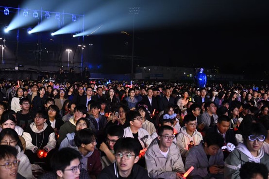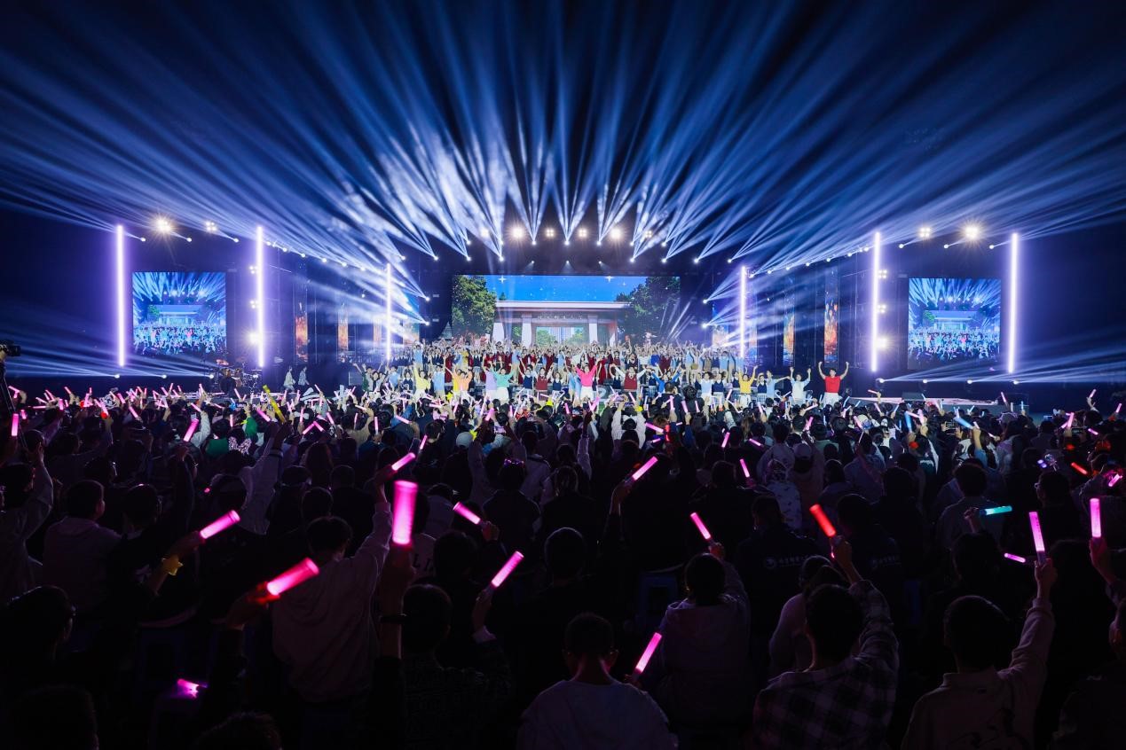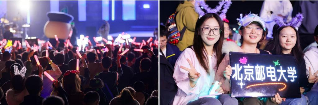 初秋的沙邮草坪,微凉的天气挡不住现场的热烈气氛。声韵流转、光影变幻、掌声阵阵,全场的师生观众挥舞手中的荧光棒热情互动,将对祖国的赤诚、对北邮的祝福、对艺术的热忱、对未来的憧憬融入音乐中。