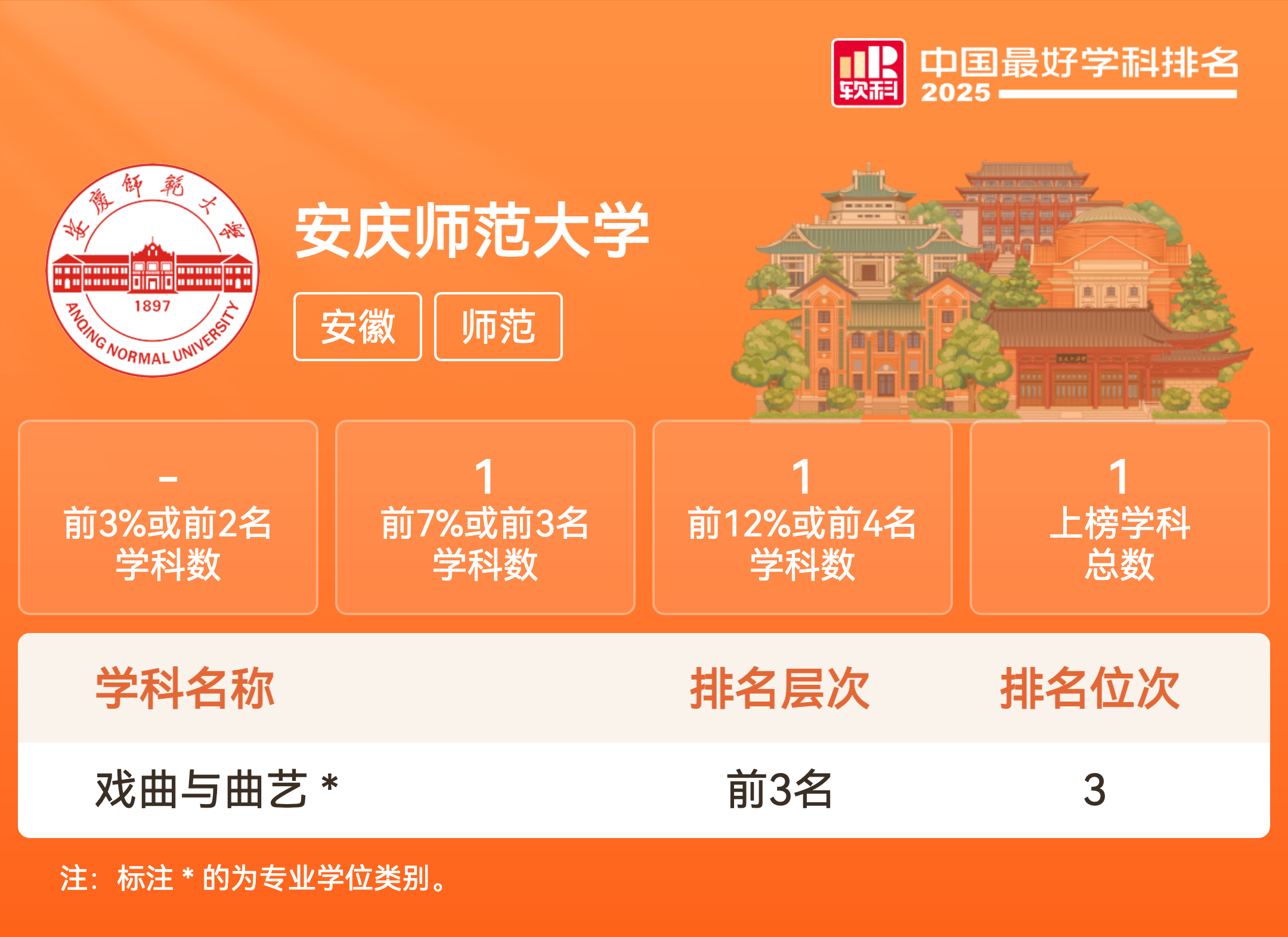 近日,高等教育评价专业机构软科正式发布“2025软科中国最好学科排名”。学校戏曲与曲艺学科凭借深厚的学科积淀、良好的建设成效,取得全国第三名的优异成绩,仅次于中国戏曲学院、上海戏剧学院两所国内顶尖戏曲专业院校,标志着学校“戏曲与曲艺”学科的建设水平已跻身全国前列,得到了权威评价机构与高等教育领域的高度认可。
