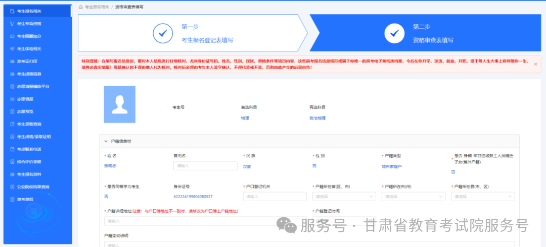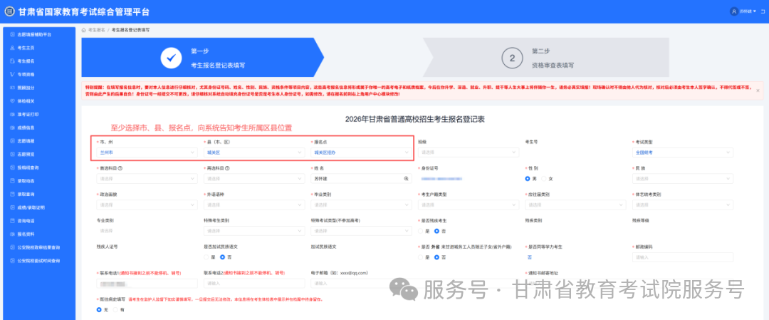 填写完所有信息后,点击 “完成注册” 即可。注意:考生账号是考生登录甘肃省国家教育考试综合管理平台的有效凭证,实行“考生一次注册,数据终身留存,账号终身使用”。高考报名、体检结果查询、准考证打印、成绩查询、志愿填报、录取结果查询、考生资格查询及成绩证明打印等关键操作,均需通过该账号完成,请考生妥善保管账号密码,避免泄露或遗忘。