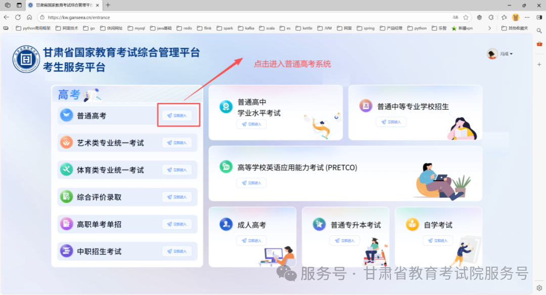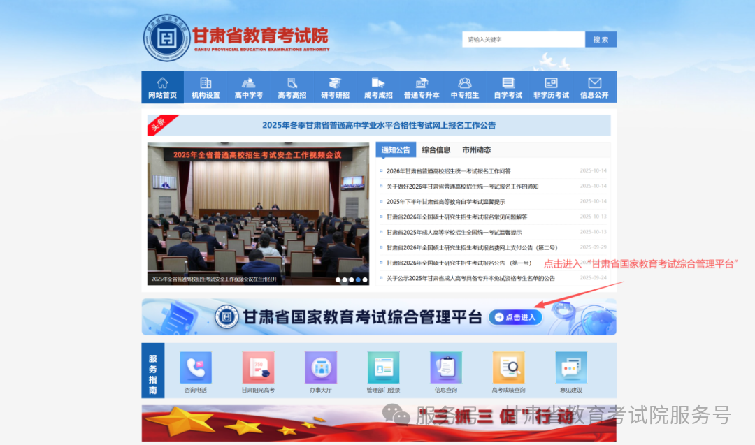 在电脑端浏览器地址栏准确输入甘肃省教育考试院官方网址:https://www.ganseea.cn/,按回车键打开官网后,在页面中部功能区或导航栏找到并点击“甘肃省国家教育考试综合管理平台”,随后选择“考生入口”即可进入登录页面;也可直接在浏览器地址栏输入考生服务平台网址:https://kw.ganseea.cn/,按回车键后直接打开登录页面,无需经过官网跳转。手机端用户可以通过微信小程序网上报名,微信搜索“甘肃招考”小程序,登录成功后选择“普通高考”→“高考报名”进行操作。本指南以电脑端操作为主,小程序操作方式与电脑端类似。