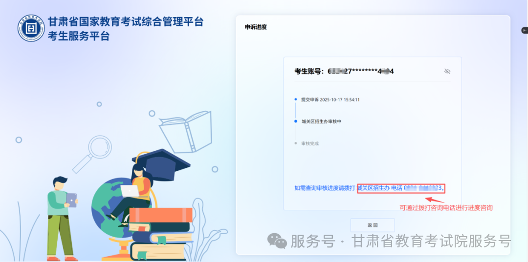 考生在材料辅助申诉过程中可通过查询申诉进度查看自己申诉结果情况。