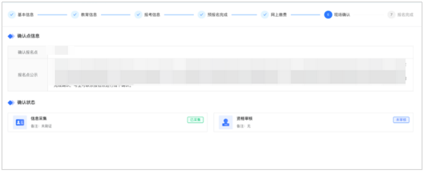 报名系统中会实时显示出考生信息采集状态及报名资格审核状态。若审核不通过,可根据审核给出的不通过理由进行填报信息修改或照片重新采集并再次提交资格审核。