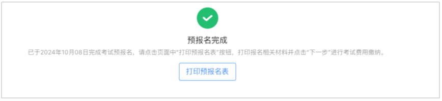 生成考生号即表示报名完成,网上报名系统步骤会自动跳转至第七步报名完成。