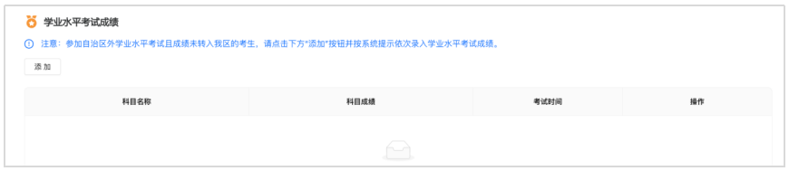“学业水平考试成绩”模块仅需要参加自治区外其他省份学业水平考试且成绩未转入我区的考生填写。