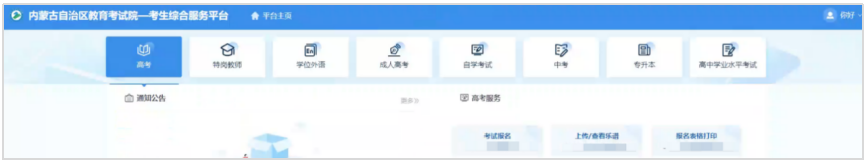 登录“内蒙古自治区教育考试院考生综合服务平台”(https://www4.nm.zsks.cn/BaseStudent/)。