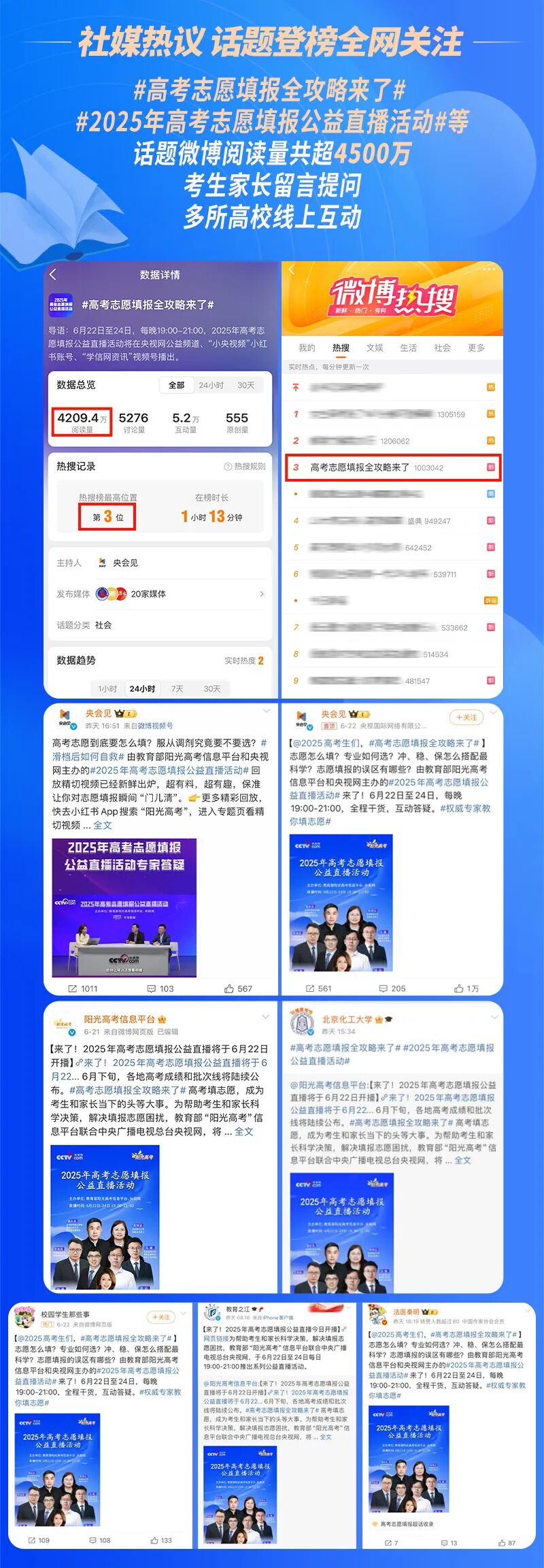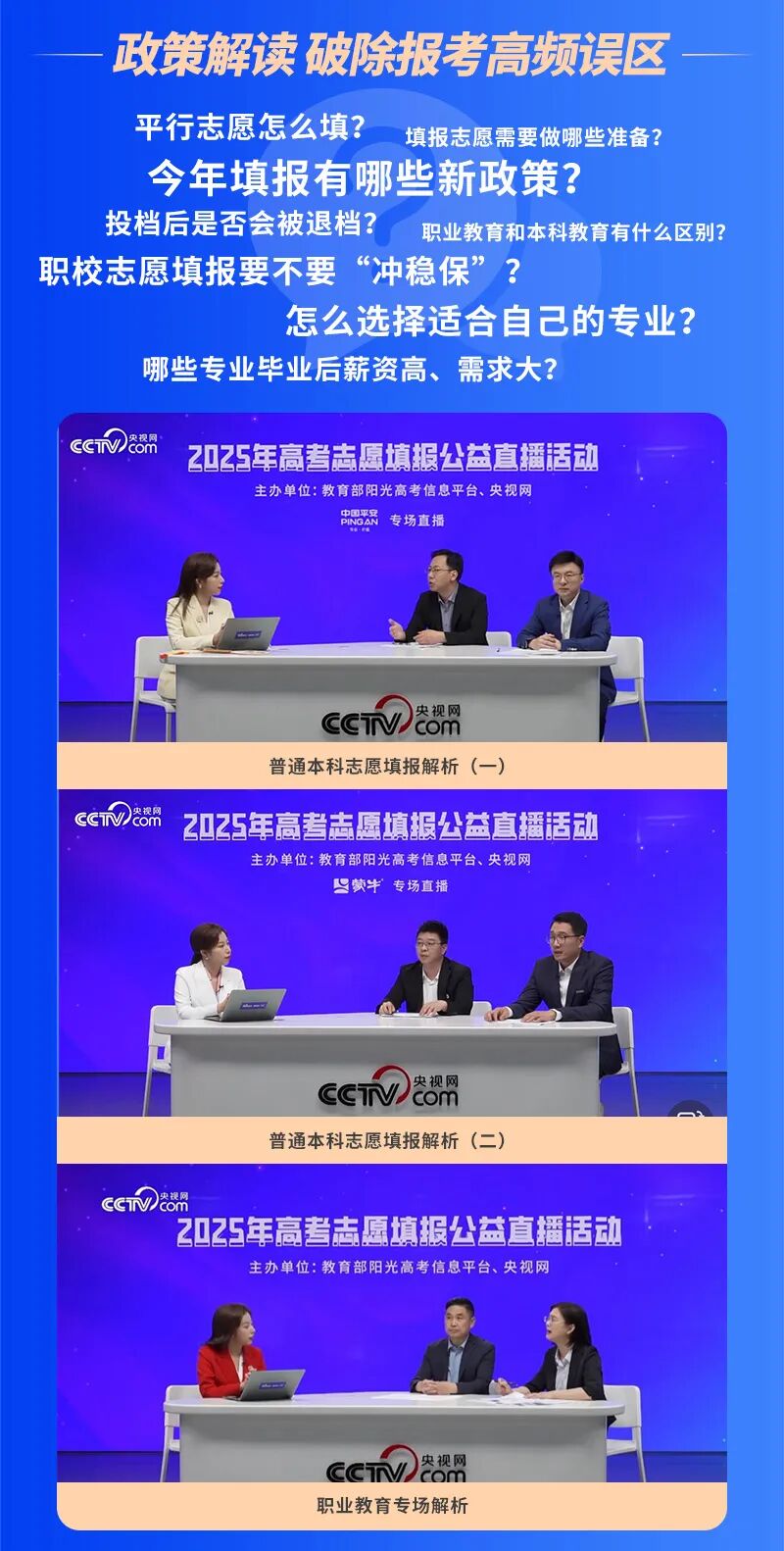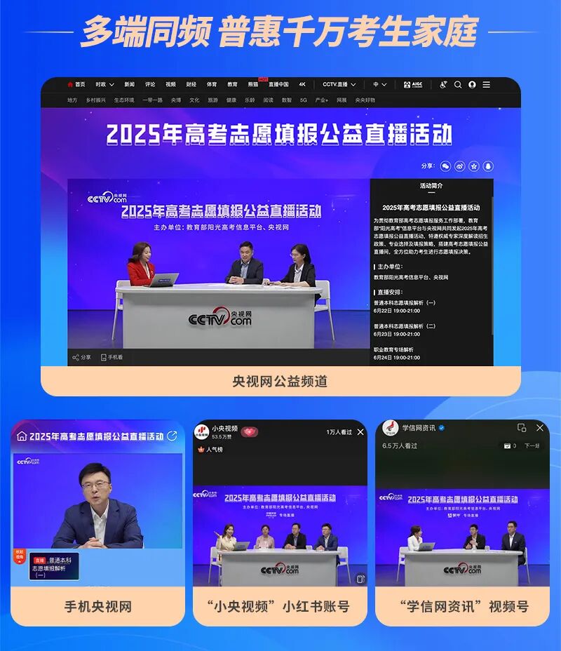 近日,我校参加的由教育部“阳光高考”信息平台和中央广播电视总台央视网共同举办的2025年高考志愿填报公益直播活动已圆满收官!