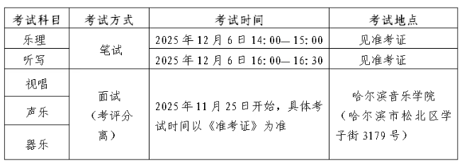 5.考生凭《准考证》和《居民身份证》参加考试,具体时间和地点以准考证为准。考生在面试考试时,有关着装、道具等方面要求应按照《黑龙江省2026年普通高等学校艺术类专业省级统一考试说明》做好考前准备,不得携带考试规定以外的物品进入考场。
