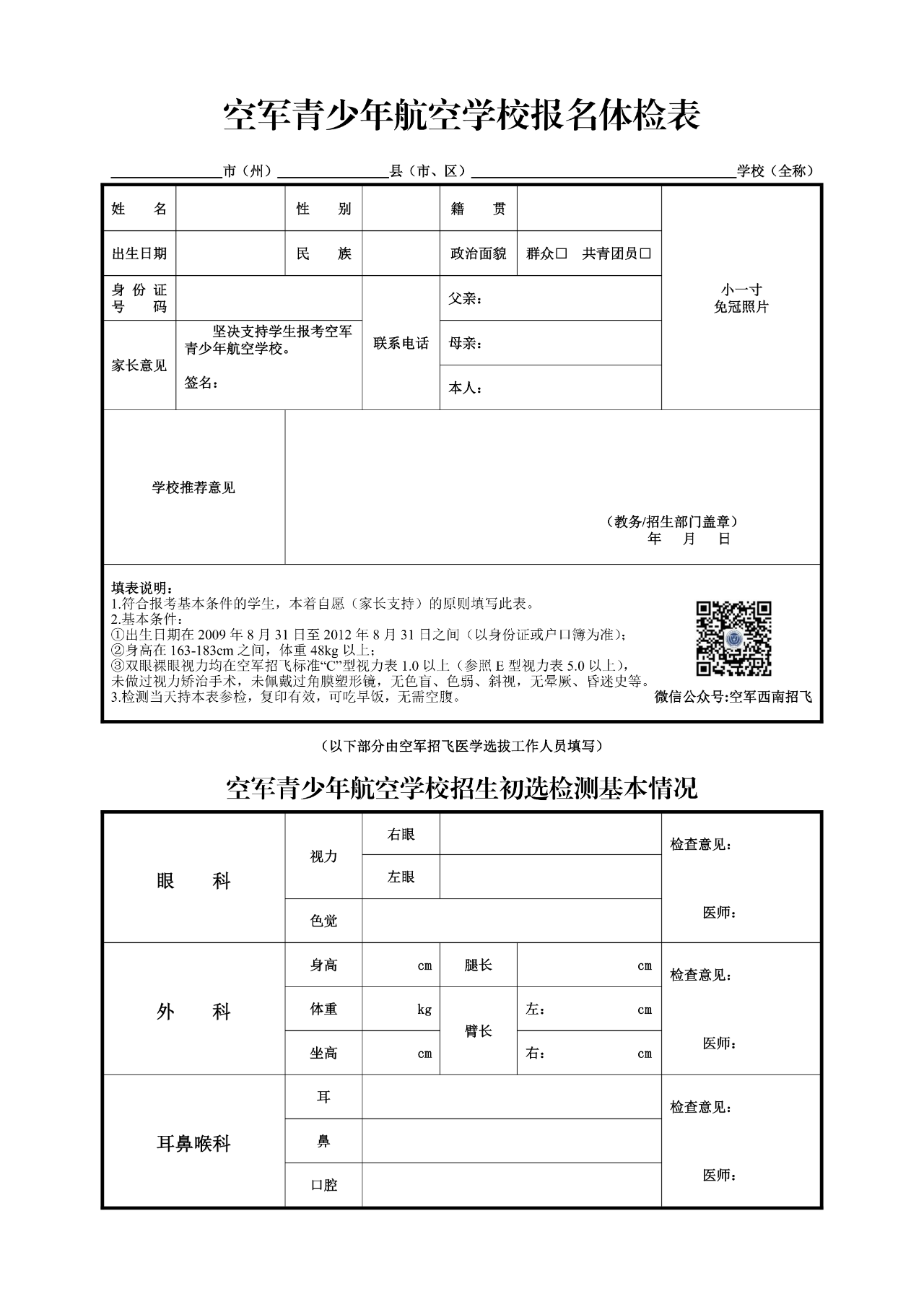 空军招飞初选检测(高三)