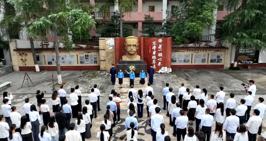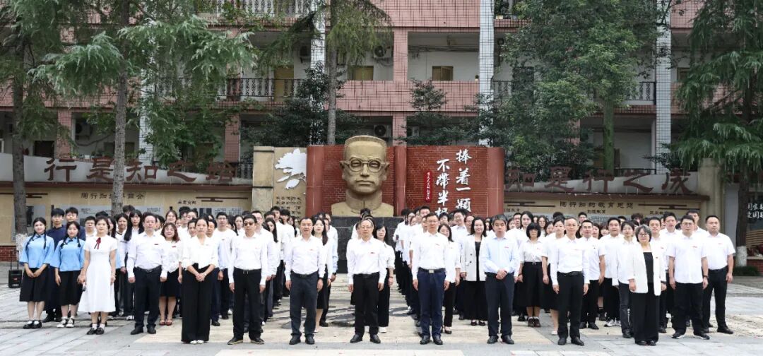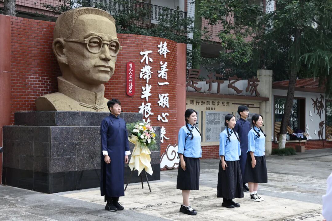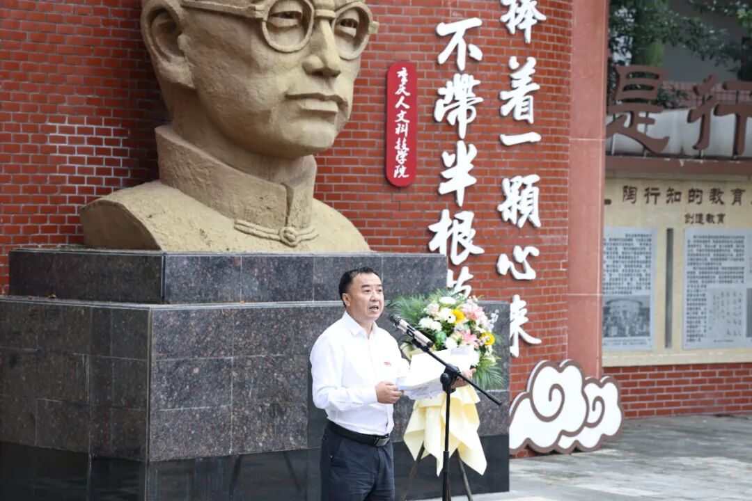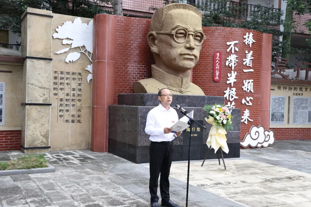 同时,他向全体师生员工发出倡议:望全体教师以先生为楷模,自觉践行“有理想信念、有道德情操、有扎实知识、有仁爱之心”的“四有”好老师标准,在教书育人岗位上发光发热;望同学们秉持“滴自己的汗,吃自己的饭”的自立精神,努力成长为追求真理、勇于担当的“真人”;更望学校管理者聚力将校园打造成陶行知教育思想的精神地标与实践高地,持续推进教育创新,提升育人质量,为强国建设、民族复兴培育更多栋梁之才!