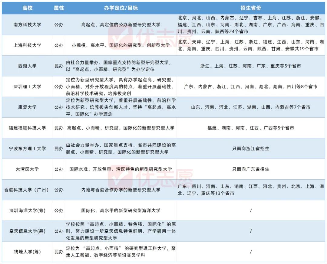 据不完全统计,目前我国的新型研究型大学名单如下: