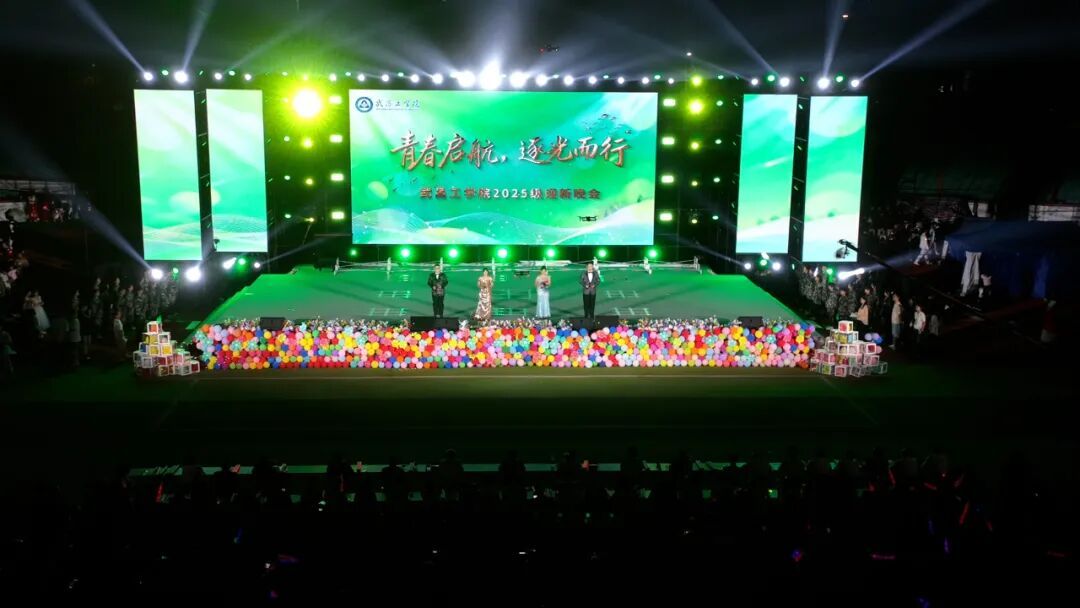 本网讯(通讯员 王越)9月29日晚,由校团委举办的武昌工学院2025级迎新晚会在学校田径运动场精彩上演。学校董事长、校长李勇,校党委书记、常务副校长方国平,副校长张建华、李斌,校党委副书记、副校长涂晓红,副校长李家伟、章翔,校长助理、教务处处长王巧霞及学校各二级单位主要负责人与2025级新生欢聚一堂,共享了一场精彩绝伦、亮点纷呈的视听盛宴。