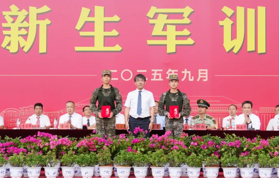 方国平代表校董事会、校党委、校行政向辛勤承训的各位教官致以衷心的感谢,向圆满完成军训任务的2025级全体同学表示亲切的问候,向在军训中涌现出的“优秀方阵”“优秀教官”“优秀学员”表示热烈的祝贺。他指出,军训是同学们迈入大学校园的第一课,也是一堂生动而深刻的成长必修课。十四天的军训,是毅力的淬炼,是成长的见证。同学们以坚韧不拔的毅力迎接挑战,用众志成城的团结攻克难关,在烈日下挥洒汗水,于风雨中砥砺前行,用实际行动践行着军训的宗旨,用青春的热血书写着成长的篇章。典礼上,方国平对2025级全体新生提出三点希望:一是赓续军训精神,做信念坚定的时代新人。希望同学们把军训中锤炼的纪律意识、集体观念和战斗作风,转化为永远跟党走的政治自觉,始终牢记“党旗所指,就是青春所向”,把“听党话、跟党走”融入血脉,把“强国有我”的使命扛在肩上,在未来的学习生活中,以党的旗帜为方向,以党的意志为行动,努力成长为让党放心、让人民满意的栋梁之才。二是永葆战友情谊,做相亲相爱的武工院人。希望同学们继续保持这份手足情深,在班级建设中互相关心、共同进步,在专业学习中优势互补、携手突破,在社会实践中群策群力、共克难关,用“厚德 笃学 自强 求新”的校训精神滋养心灵,用团结友爱的力量温暖校园,让武工院这个大家庭永远充满阳光与欢笑,共同书写属于你们的青春赞歌。三是不负金色年华,做知行合一的青春达人。希望同学们以奋斗为笔,以担当为墨,在知行合一中锤炼过硬本领,在笃行实干中书写精彩人生,真正成长为德才兼备、能担大任的新时代青年。