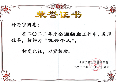 四年的辛勤耕耘,结出了累累硕果。他凭借出色的工作表现,先后荣获 2022 年度“优秀招生个人”、2023 年“优秀连指导员”、2023 - 2024 年度“优秀通讯员”、2024 年度“优秀学生工作者”以及“优秀辅导员”等多项荣誉。