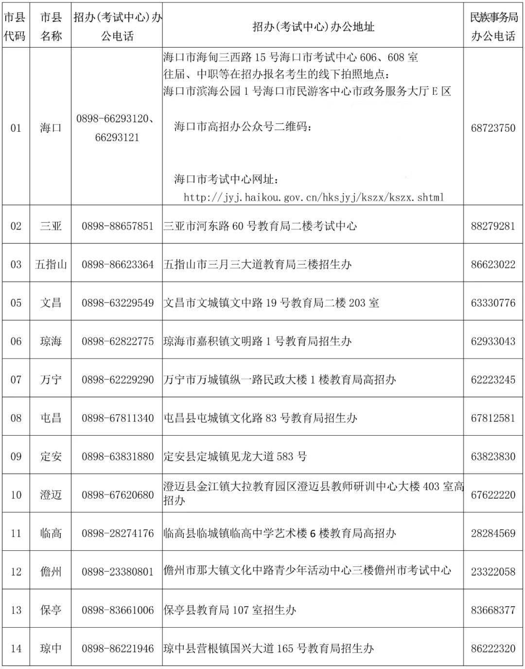 2026年海南省普通高考报名期间各市县咨询电话和地址