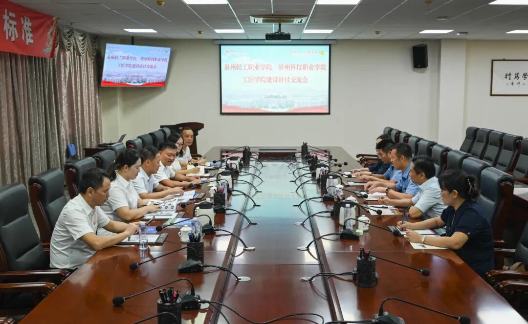 为进一步推进我校“福建省工匠学院”建设,学习兄弟院校在工匠学院建设、人才培养、产教融合等领域的先进经验,10月21日上午,漳州科技职业学院副理事长黄铁枝副研究员、副校长林炎平副研究员、工会主席柯立民副研究员、继续教育学院院长王妙琼副研究员、工会副主席黄翠萍副教授等组成的调研团,前往全国总工会“2024年度重点支持的工匠学院”—— 泉州轻工职业学院,开展专题调研交流活动。