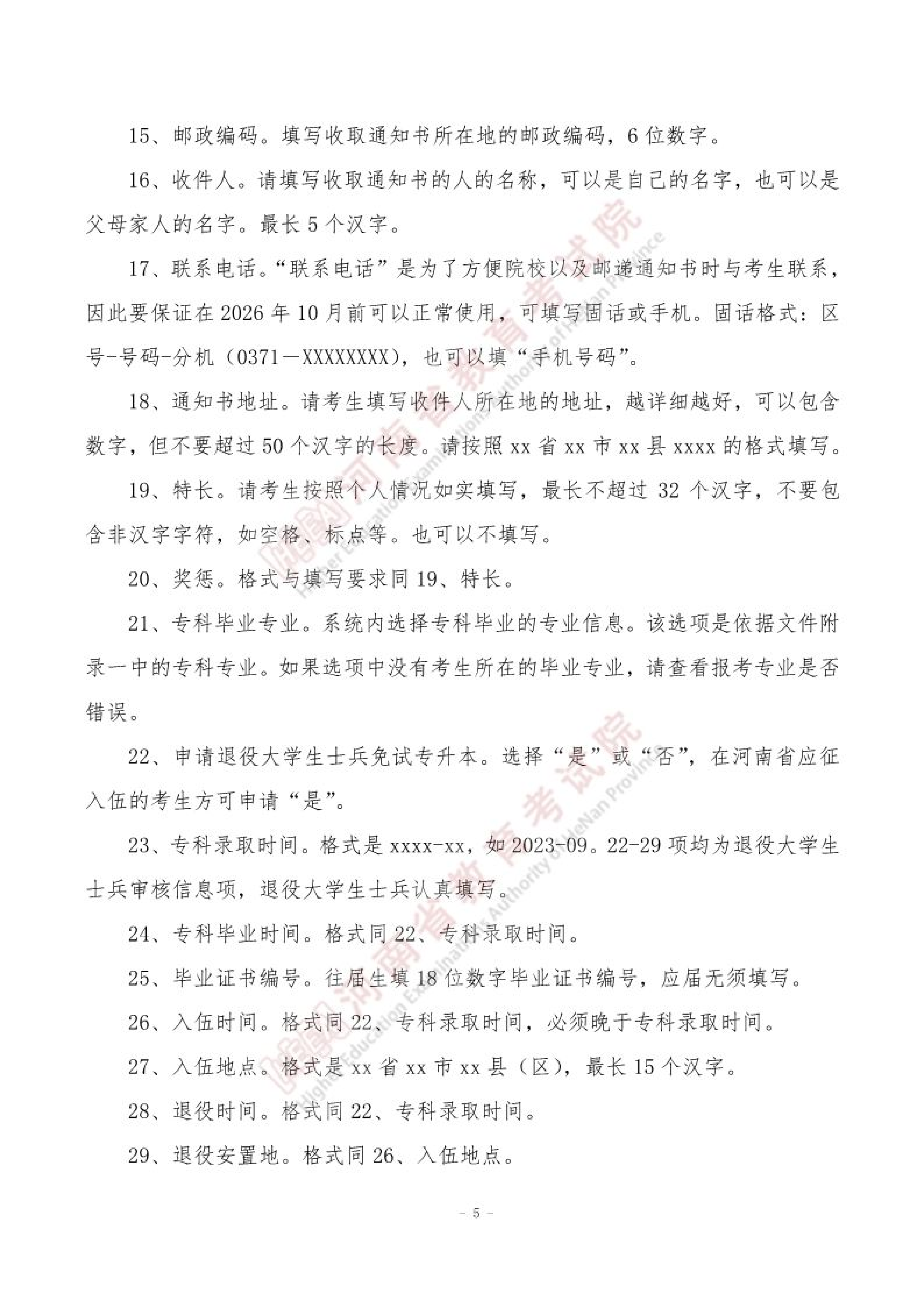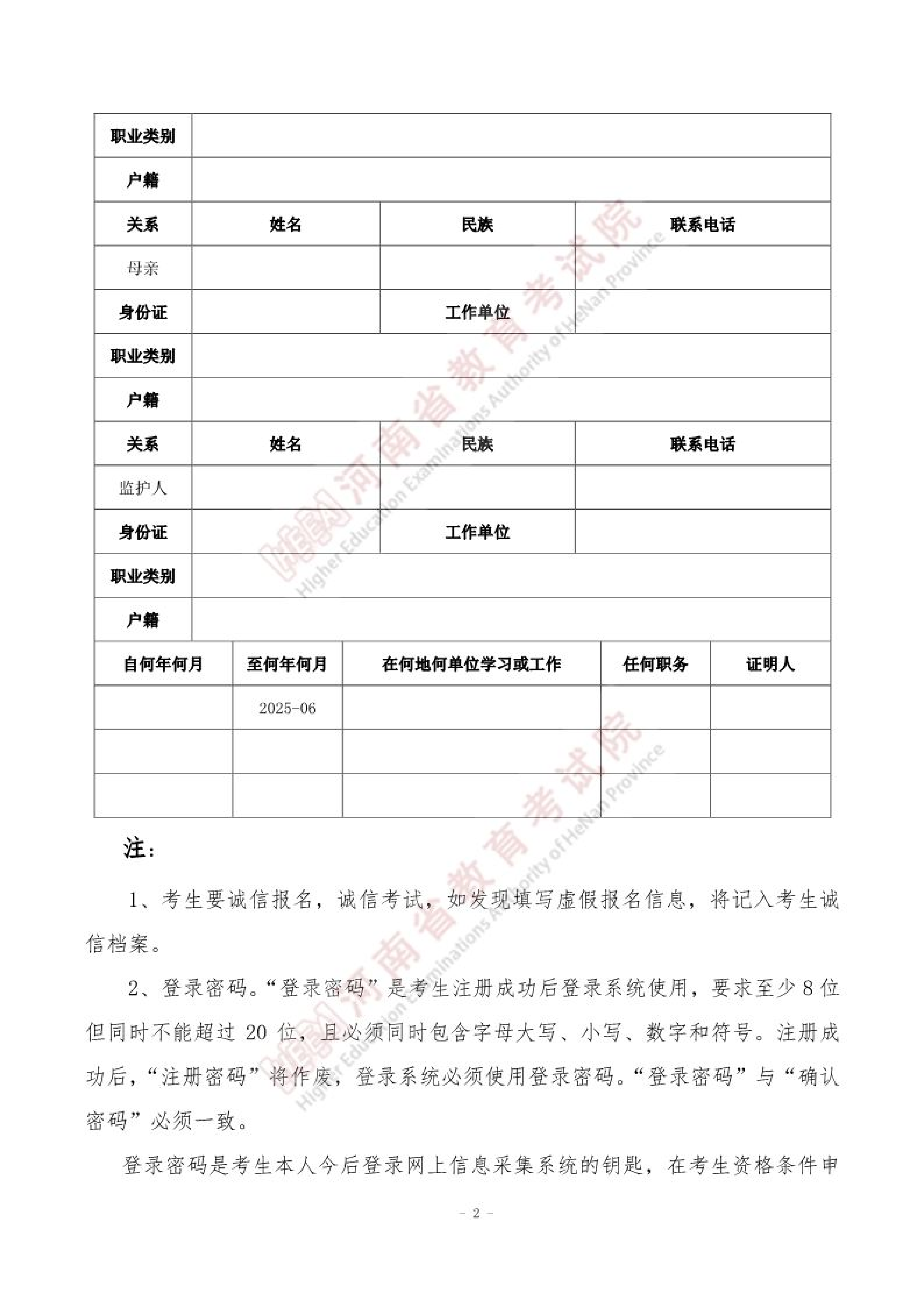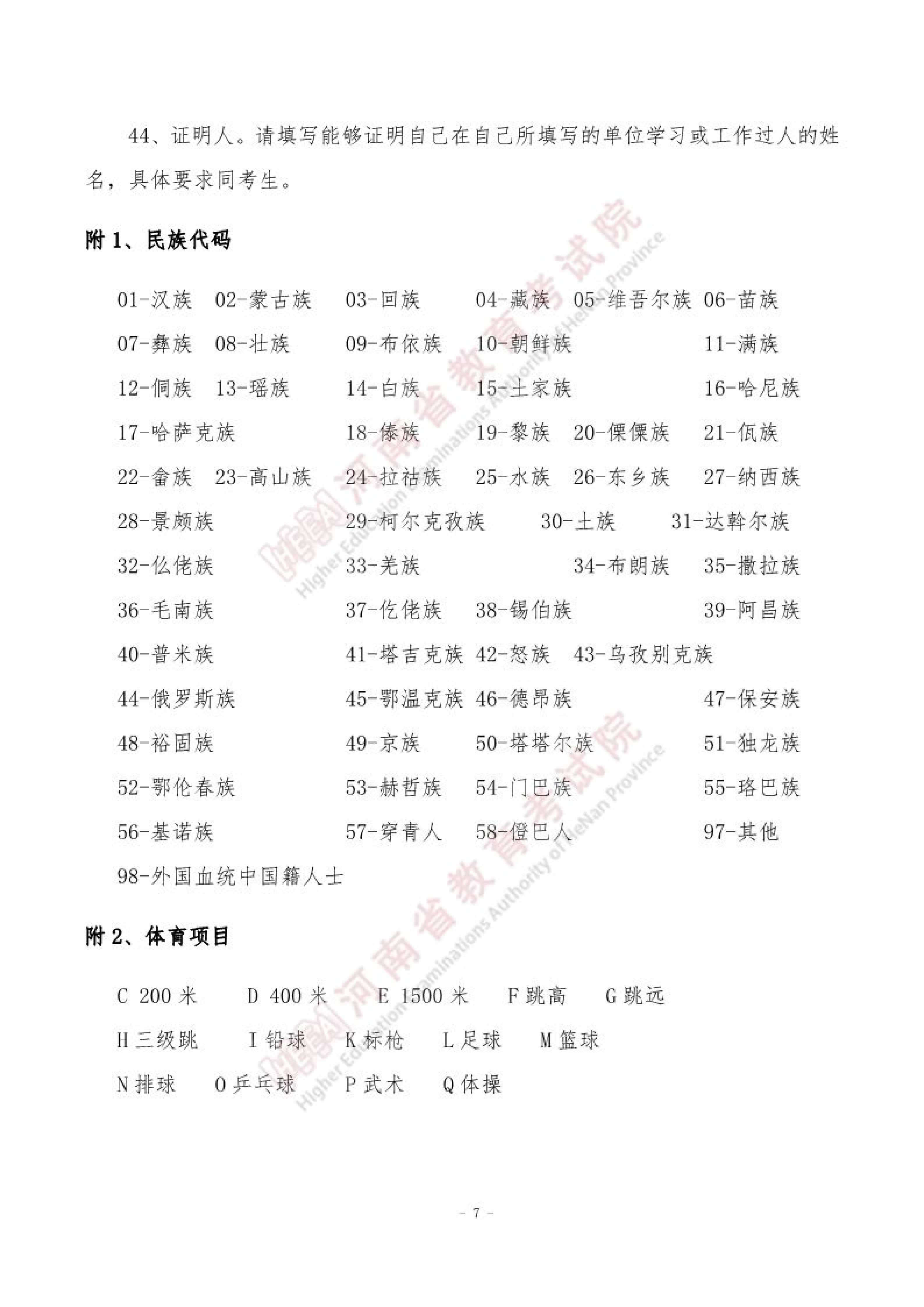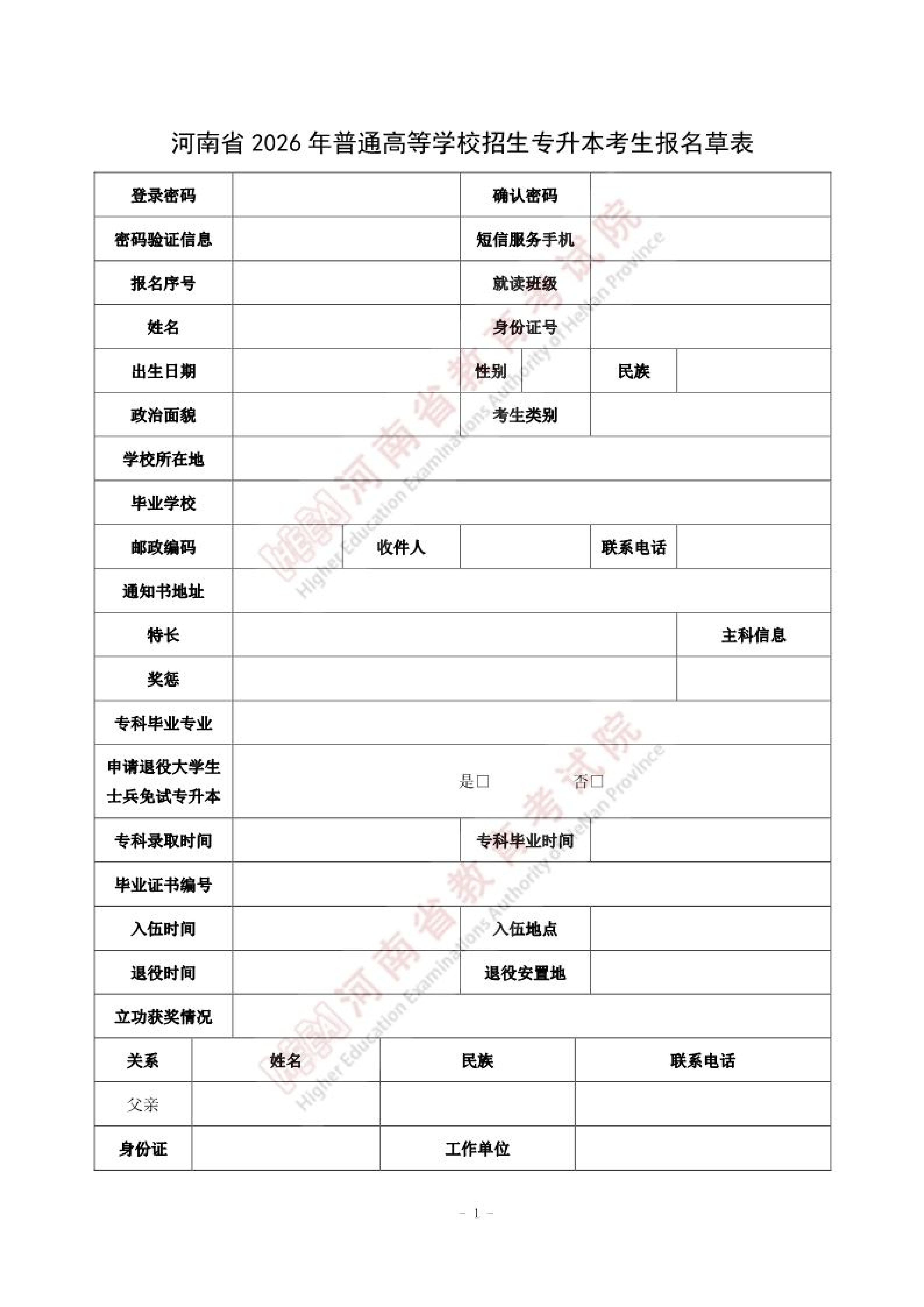 附件:河南省2026年普通高等学校招生专升本考生报名草表