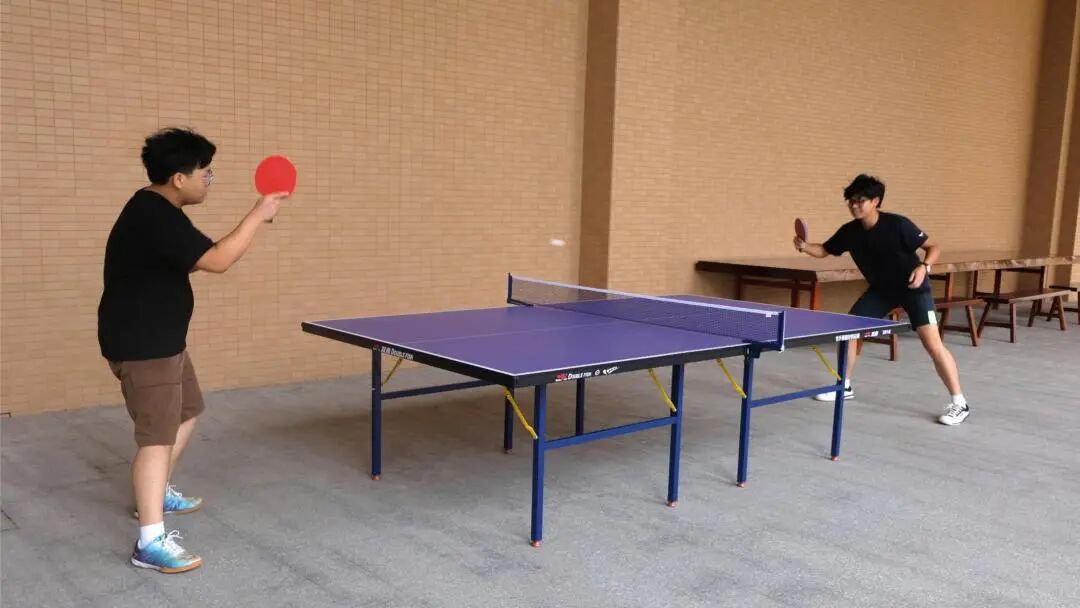 球台暂设在H1、H2教学楼架空层连廊处,课间也能练练手!叫上搭子,让ta看看什么才是真正的旋转球!