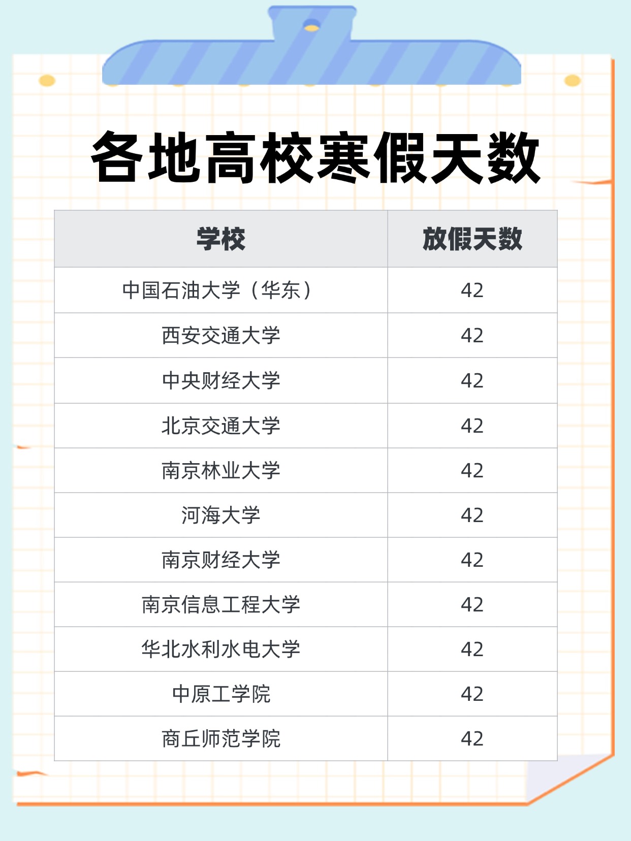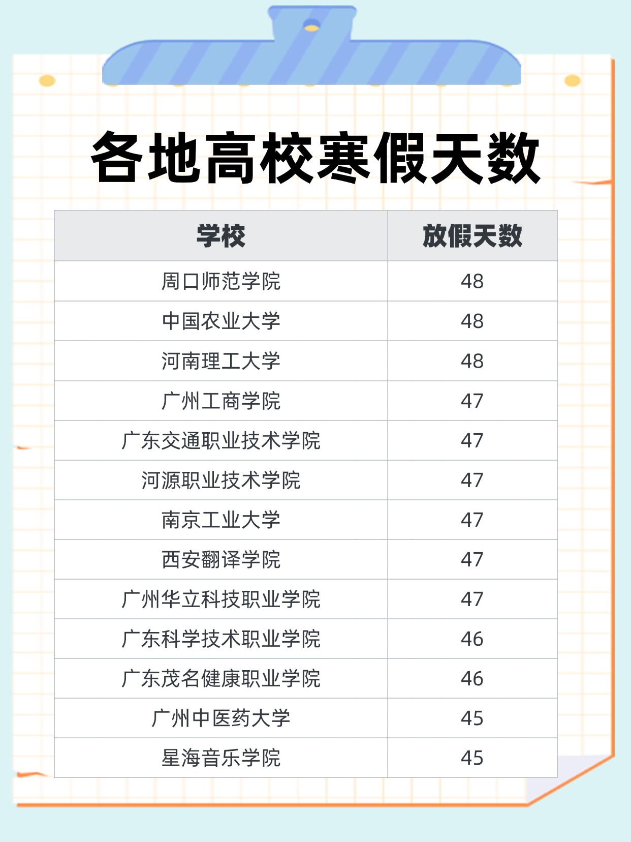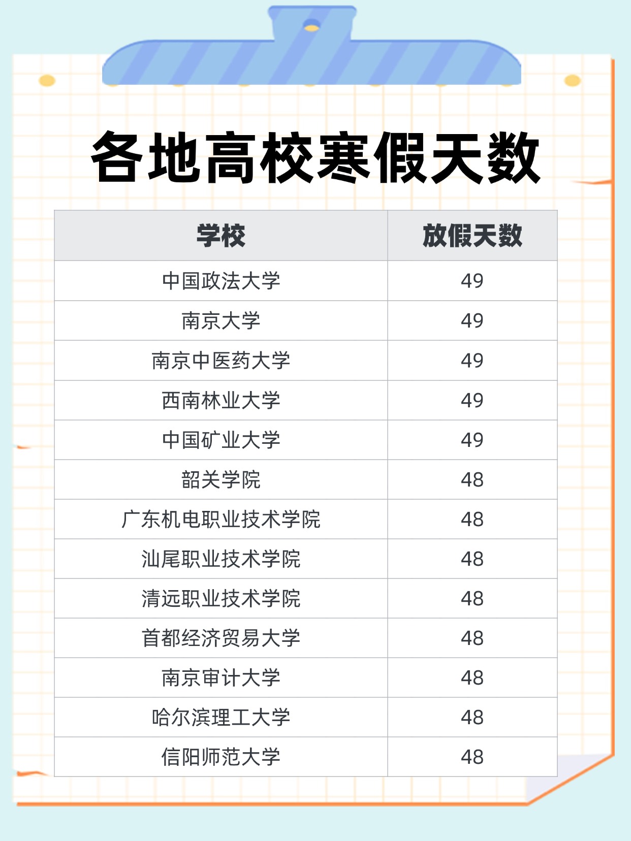 注:篇幅有限仅展示部分,数据整理自各校校历和网友投稿,仅供参考,以学校最新安排为准。