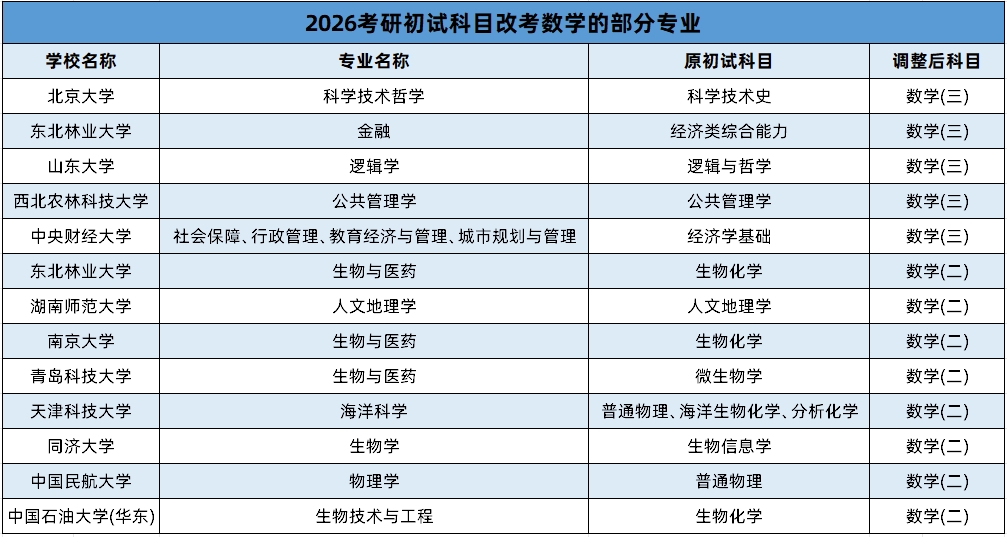 一、2026年考研数学调整: