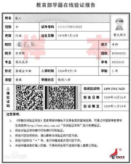 “中国高等教育学生信息网”的《教育部学籍在线验证报告》;