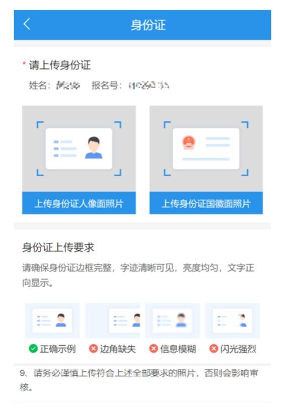 注:上述资料1、2照片上传后提示审核未通过的考生,须重新上传合格的照片。