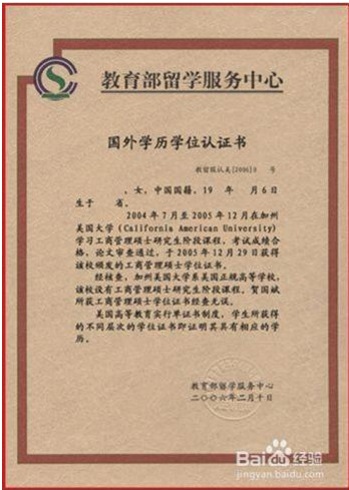 教育部留学服务中心出具的《国(境)外学历学位认证书》。