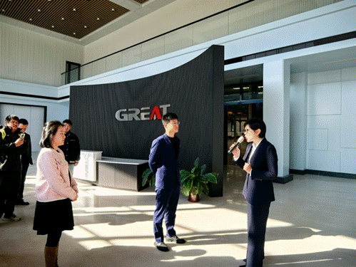 格锐特能源装备集团总裁李春艳及公司相关负责人热情接待邵晓康一行。李春艳总裁带领师生实地参观了企业生产车间,详细介绍了企业在核心技术攻关、智能化生产线运行、核心产品研发及市场应用等关键环节的具体情况,直观展示了企业在新能源装备、智能装备领域的研发实力与生产规模,并重点说明了当前企业发展阶段对复合型人才的迫切需求。