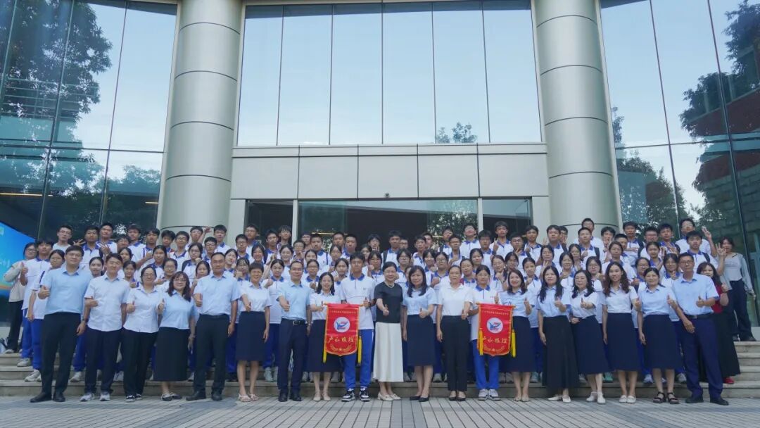 随着主持人宣告:“请‘卢永根班’学生代表上台接旗!”两面印有“卢永根班”的班旗缓缓展开。高校长与余明副院长步上讲台,将班旗郑重交予学生代表,眼中闪烁着信任与鼓励。