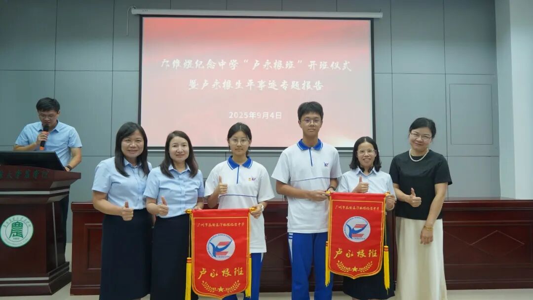 金秋九月,丹桂飘香。9月4日,广州市花都区邝维煜纪念中学首届“卢永根班”开班仪式暨卢永根院士事迹报告会在我校隆重举行。这是一场跨越时空的精神对话,更是一次面向未来的使命传承——我校专家导师、邝维煜纪念中学校领导与2025级“卢永根班”(高一5班、高一7班)全体师生齐聚一堂,共同见证这个承载着特殊意义的重要时刻。