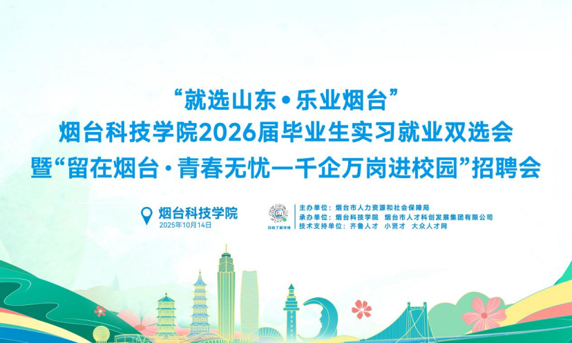 为深入贯彻党中央、国务院关于做好高校毕业生就业工作决策部署,落实省委、省政府及省教育厅相关工作要求,为搭建精准高效的供需对接平台,扎实推进2026届毕业生就业工作,10月14日,由烟台市人社局和我校联合举办的“就选山东·乐业烟台”烟台科技学院2026届毕业生实习就业双选会暨“留在烟台·青春无忧——千企万岗进校园”招聘会在蓬莱校区和黄渤海校区成功举办。本次双选会共吸引了山东魏桥创业集团、山东玲珑轮胎、鲁南制药、豪迈集团、北汽福田汽车、上汽通用五菱等省内外近200家用人单位参加,累计提供招聘岗位1200余个,招聘人数6000余人,学校近7000名毕业生参加。