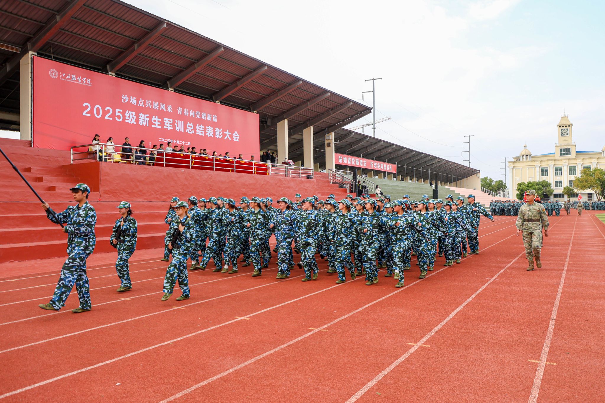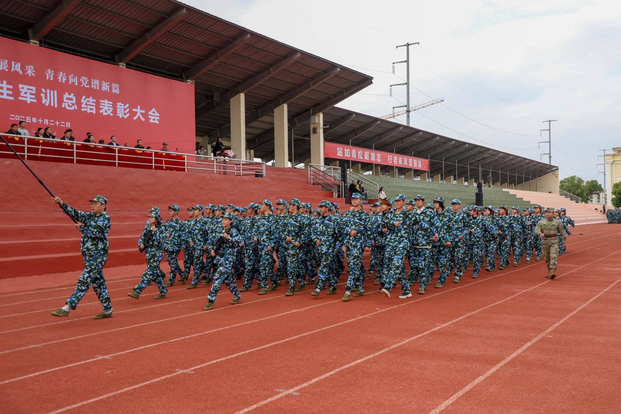 新闻中心讯(文/樊翔 图/万强 丁鹏 钟宏鹏 颜冲梅涛 古明希 刘毅 陈浩天)秋意渐浓日,迷彩练兵时。10月22日下午,江西服装学院2025级新生军训总结表彰大会在田径场举行。校党委书记林井萍、党委副书记唐新强出席大会,党委宣传部、学工处、教务处、团委、武装部等职能部门负责人,各学院党委(总支)书记(副书记)、学工办主任、新生辅导员、全体军训教官、2025级全体新生参加了大会。大会由人民武装部部长鲍鹏主持。