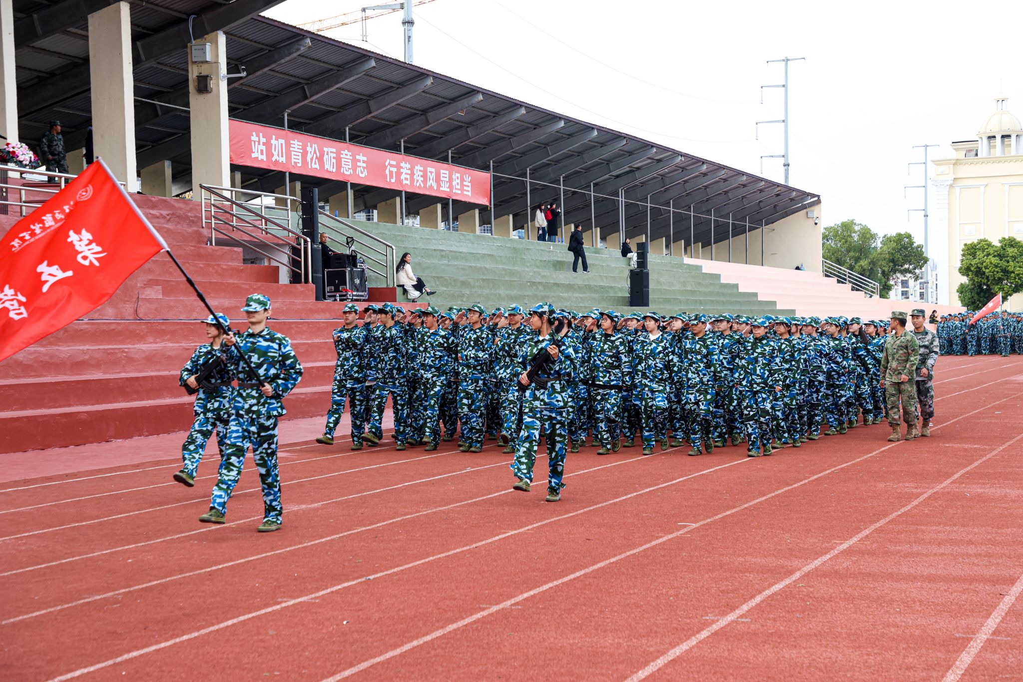 升旗仪式后,分列式表演正式拉开帷幕,各营方阵迈着铿锵步伐通过主席台,声声宏亮的口号彰显着江服学子牢记使命、奋发有为的坚定决心。