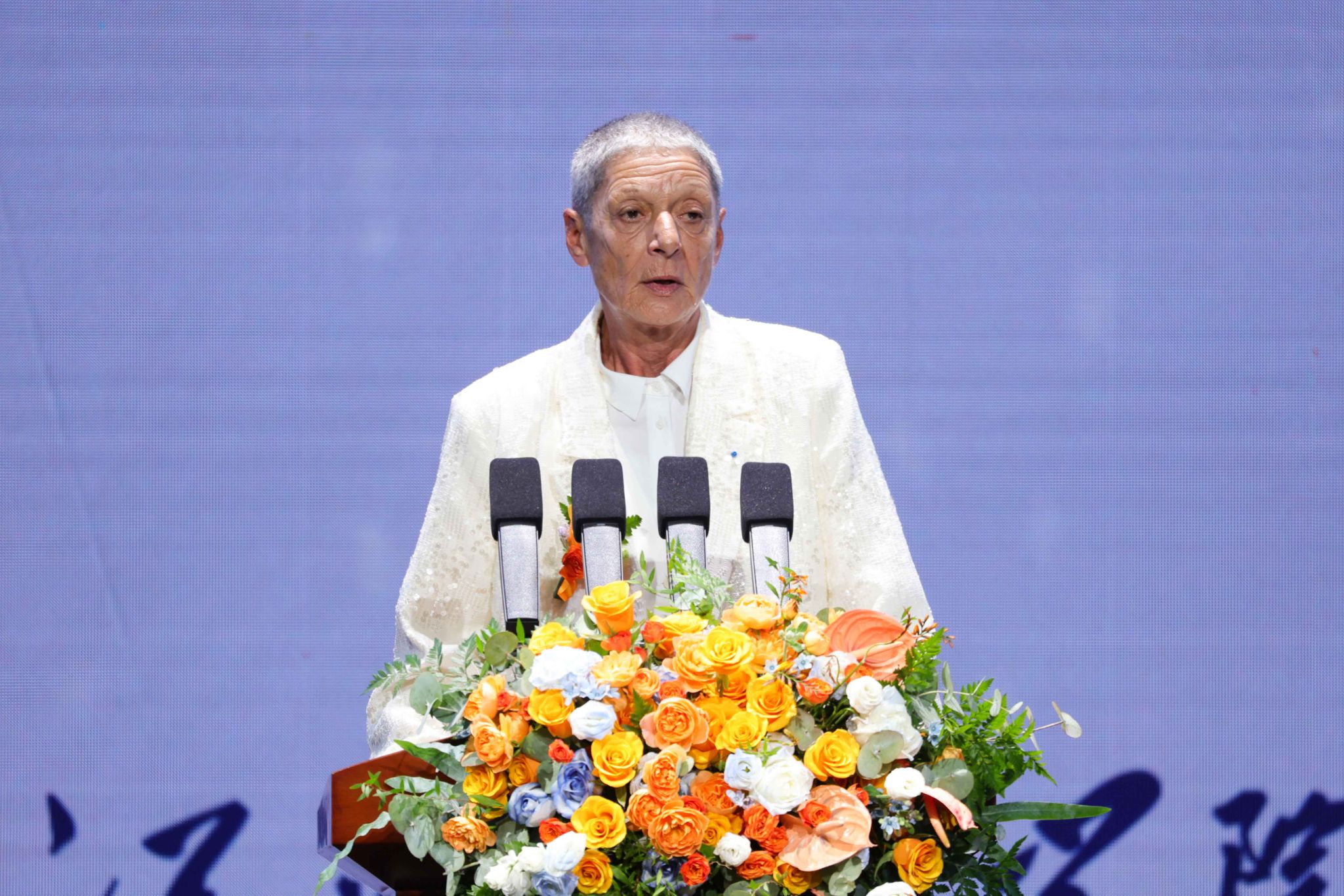法国巴黎国际裁剪学院校长克里斯汀博士代表国外院校致辞。她指出2025江西服装学院国际时尚艺术节以 “和”为主题,以“一带一路”为纽带,为中外时尚院校搭建文化与灵感交流平台,诠释时尚产业无国界对话与共创的真谛。她高度赞赏江服在高素质、创新型时尚人才培养上的显著成就。她表示,这不仅是两校深化合作的坚实基础,更是行业培养“深植本土文化、兼具全球视野”年轻人才的重要实践。她衷心希望在“一带一路”倡议引领下,法国巴黎国际裁剪学院与江西服装学院能持续深化合作关系,共促时尚教育发展。