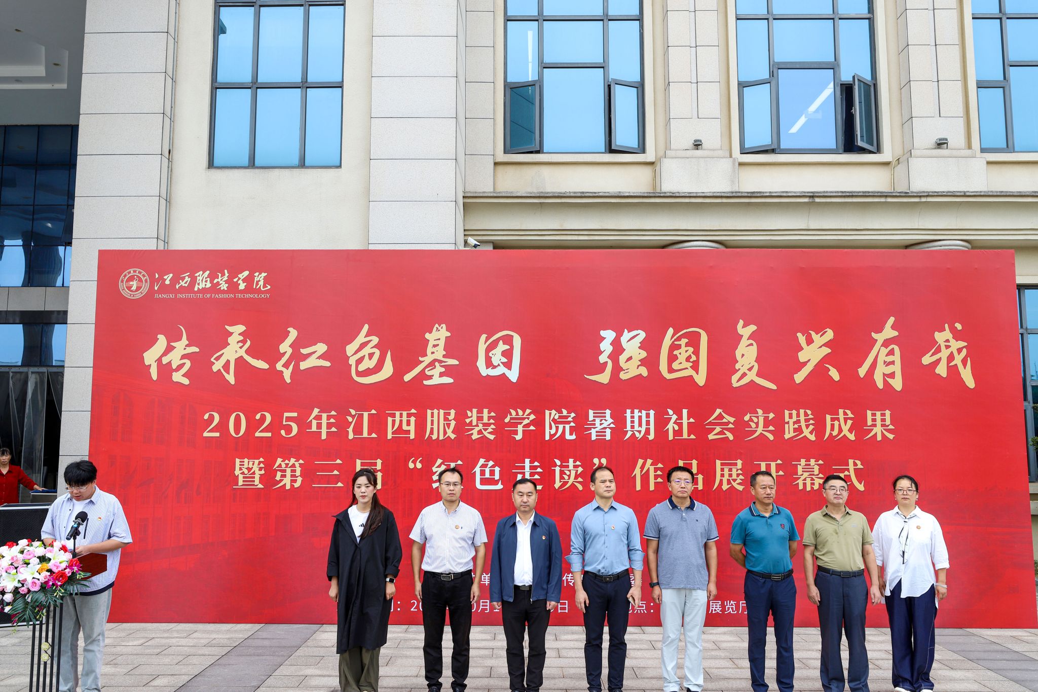 新闻中心讯(文/龙瑞行 图/黄梓翔 钟宏鹏 梅涛)为深入学习宣传贯彻党的二十大和二十届二中、三中全会精神和习近平总书记考察江西重要讲话精神,聚焦立德树人根本任务,集中展示我校红色文化育人成果,进一步激发全校学生爱国之情、强国之志,教育引导青年大学生争做担当民族复兴大任的时代新人。10月14日上午,江西服装学院“传承红色基因 强国复兴有我”2025年暑期社会实践成果暨第三届“红色走读”作品展开幕式在图书馆广场举行。校党委副书记唐新强出席并宣布展览开幕,党委宣传部、教务处、学工处、校团委、保卫处、图书馆、马克思主义学院主要负责人,各学院党委(总支)书记、辅导员,以及实践团队指导老师和新生代表共同参加开幕式,开幕式由宣传部宣传教育科科长万强主持。